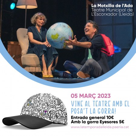 La Temporada Lleida ha programat l’espectacle “La motxilla de l’Ada” en el marc de l’activitat “Posa’t la gorra”, que se celebra aquest diumenge al matí al Turó de la Seu Vella. Per la tarda, a les 18.00 hores, el Teatre Municipal de l’Escorxador acollirà aquesta obra de teatre dins de la programació “Amb la Tribu”. Les persones que assisteixin amb la gorra Eyesores d’enguany tindran un preu de 5 € en la compra d’entrades. La resta, el preu de l’entrada general és de 10 € i per als Amics i les Amigues de LaTemporada, és de 9 €.