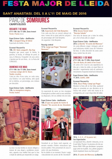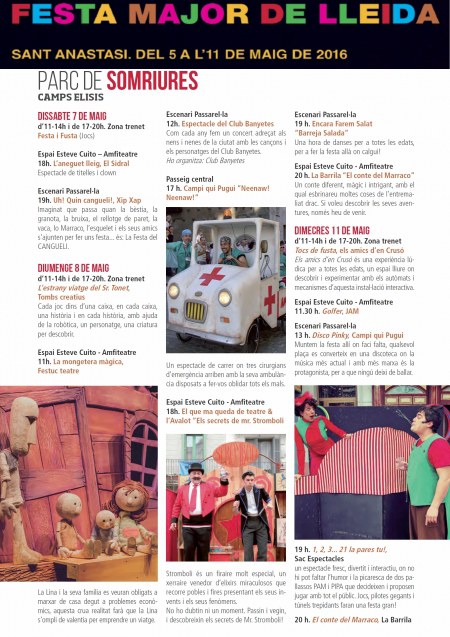 A paeria.cat/festes teniu tota la programació, però nosaltres us en deixem aquí l'estrictament escènica i familiar del Parc de Somriures.